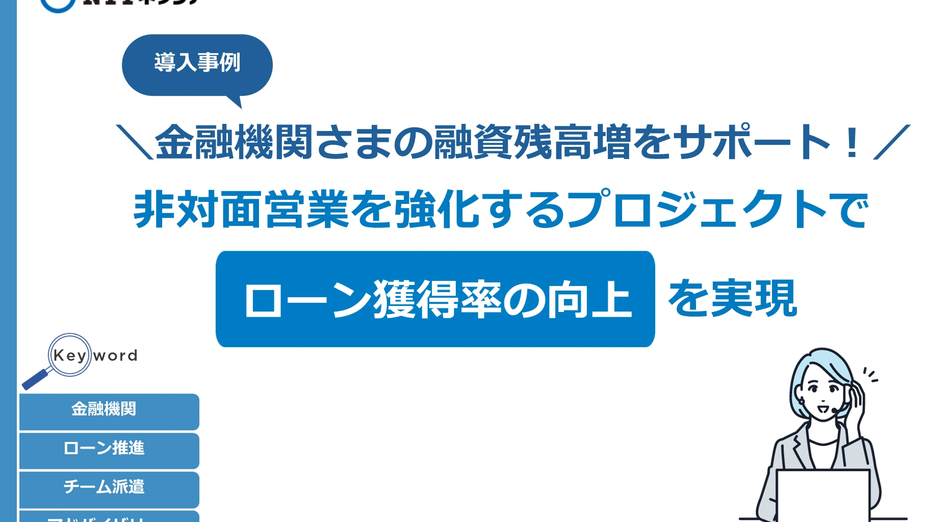導入事例 金融機関さまの融資残高増をサポート!非対面営業を強化するプロジェクトでローン獲得率の向上を実現(広島銀行さま)